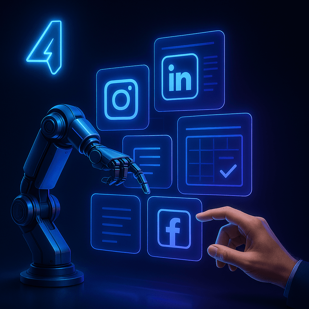 Most business owners know they “should be posting more” — but between client work, admin, calls, and emails, social media is usually the first thing to die.